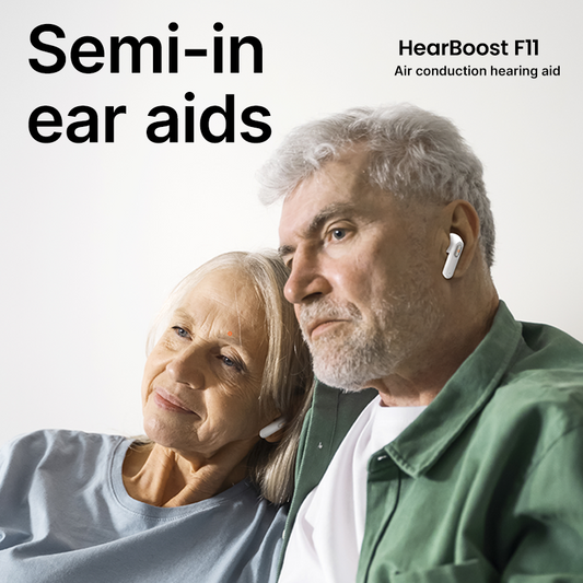 BOCOOLIFE HearBoost F11 TWS Air Conduction Hearing Aids | Semi In-Ear, Bluetooth 5.3, for Mild to Severe Hearing Loss